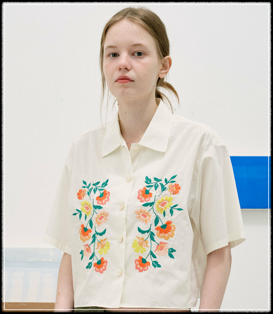 특히 화이트 컬러라서 어디에든 찰떡같이 어울리고, 꽃자수 디테일이 잔잔하게 포인트를 줘서 너무 러블리해요. 💐💖 바지에 넣어 입으면 단정하고 세련된 오피스룩, 내추럴하게 빼서 입으면 편안한 데일리룩 완성! 요즘 같은 날씨에 가볍게 툭 걸치기 정말 좋은 셔츠네요. 봄여름 가을까지 쭉 입기 좋은 기본템이라서 하나쯤 꼭 소장해야 할 아이템 아닐까요? 🥰