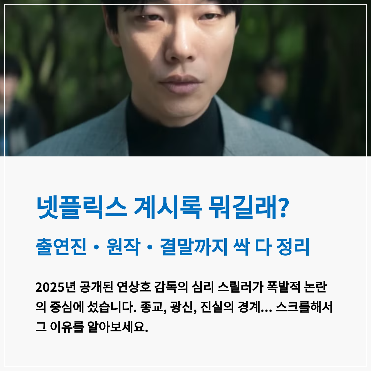 | 연상호 감독 | 심리 스릴러 | 넷플릭스 화제작 |
