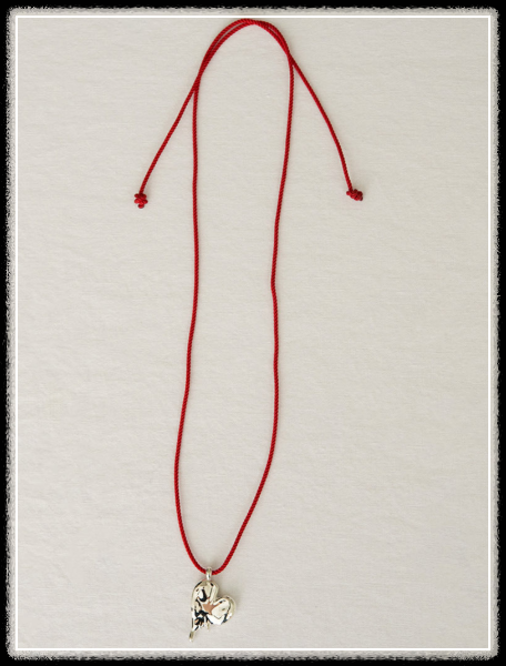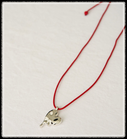 마치 실버 하트가 녹아내린 듯한 디테일에, 비비드한 레드 스트링을 매치해
