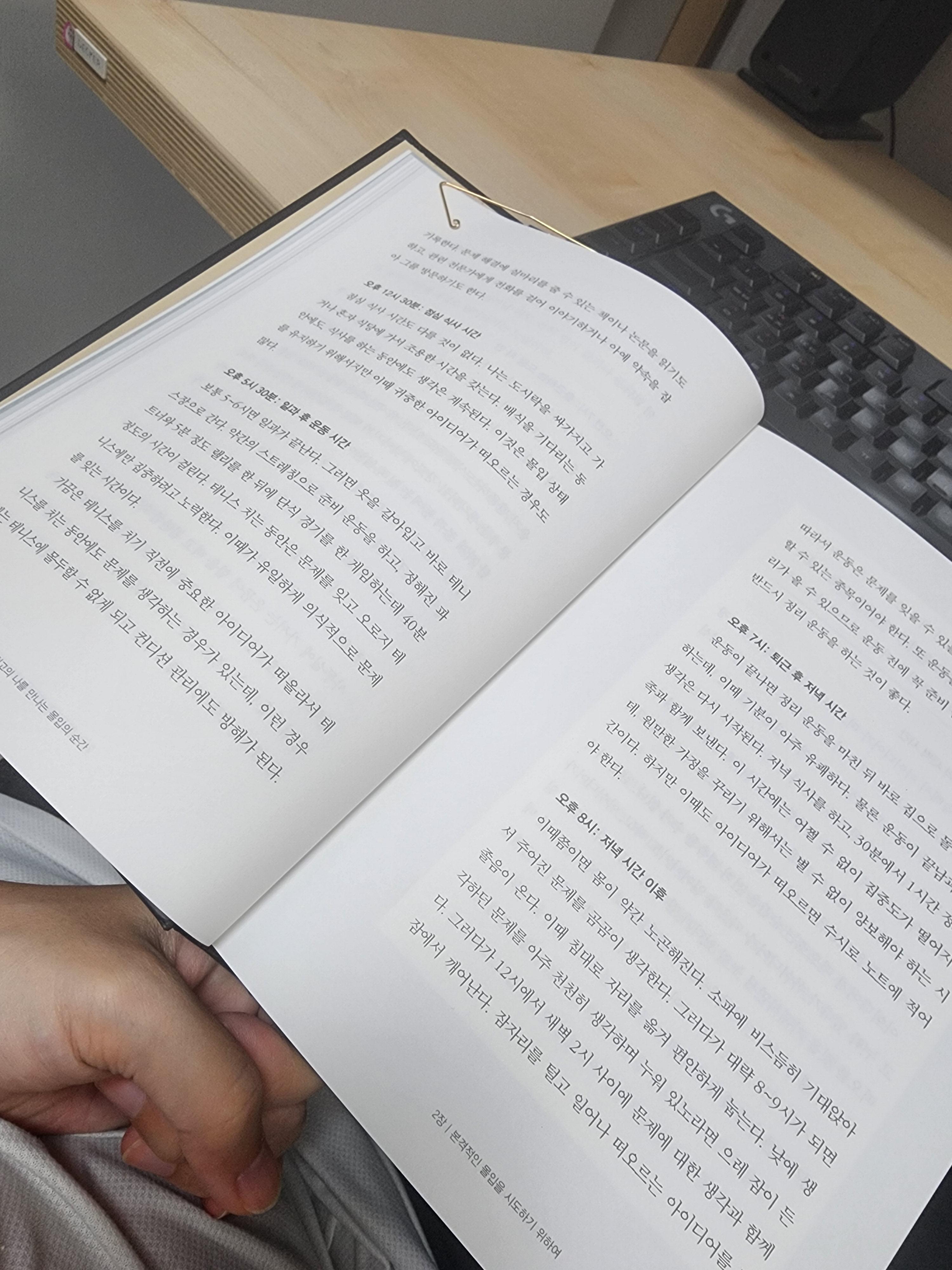 이게 은근 책을 펼치고 그걸 유지하고 있는 게 은근히 거슬렸다. 침대나 소파에서도 책을 펼치고 있는 게 좀 그랬다.