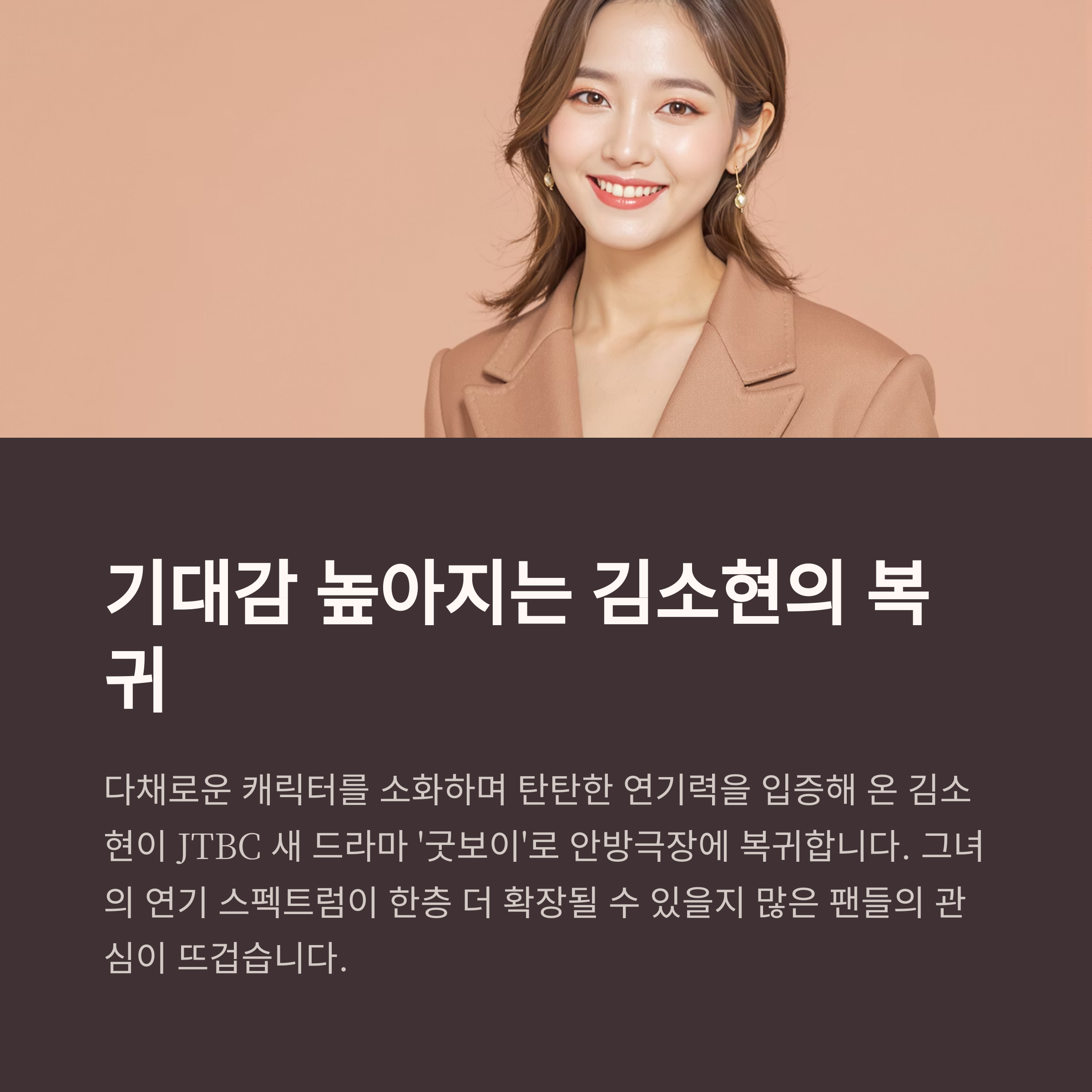 이처럼 많은 팬들은 김소현의 차기작 소식에 설렘을 감추지 못하며, 그녀가 굿보이를 통해 보여줄 새로운 연기 변신과 매력에 큰 기대를 걸고 있습니다.
