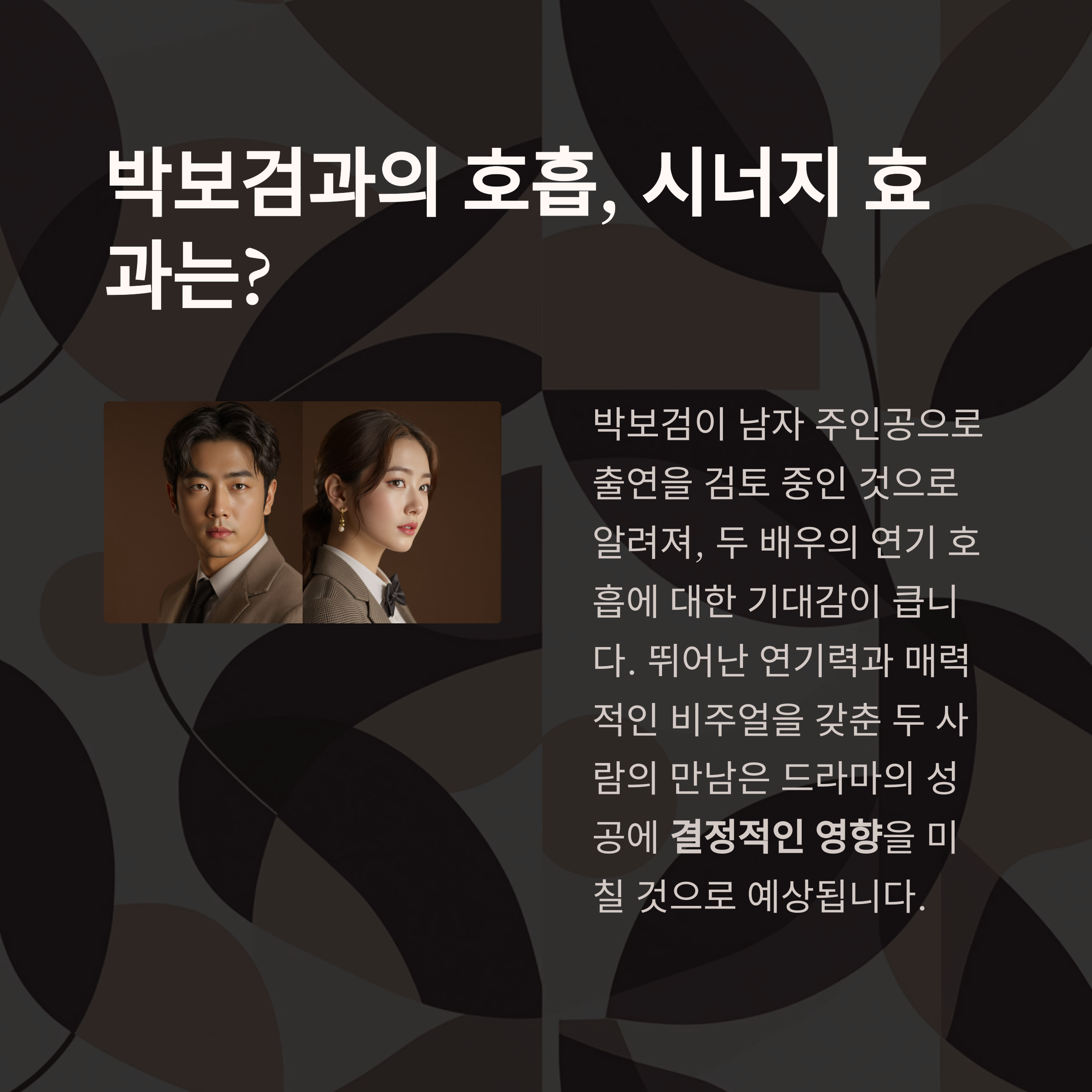 두 배우 모두 뛰어난 연기력과 매력적인 비주얼을 갖추고 있어, 이들이 함께 만들어낼 시너지는 드라마의 성공에 결정적인 영향을 미칠 것으로 예상됩니다.