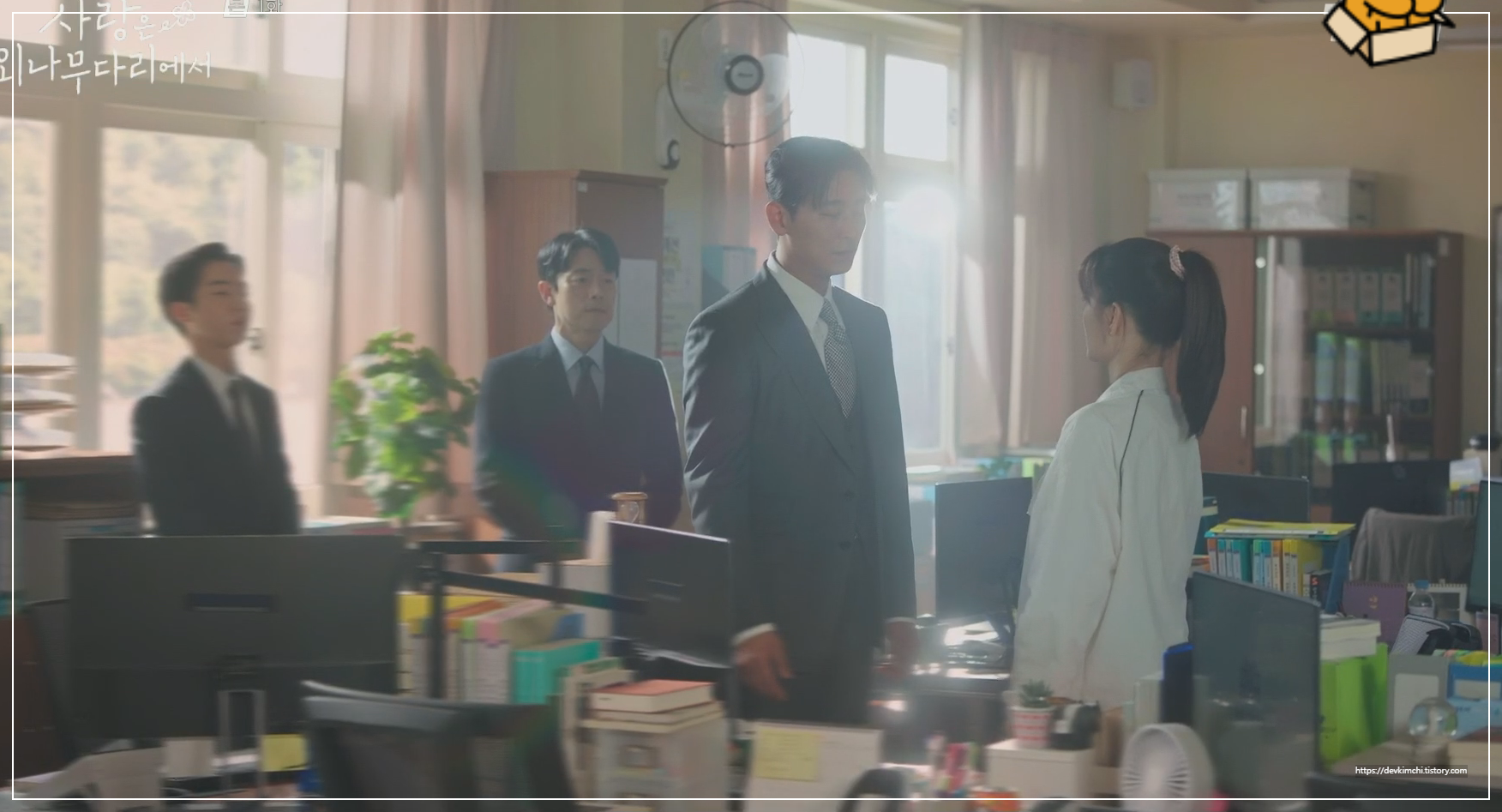 나무가 길게 늘어선 교정과 깔끔하게 정돈된 화단은 드라마 속에서 아름다운 순간들을 더욱 감성적으로 표현해주죠.