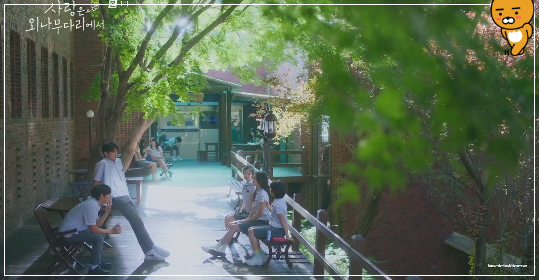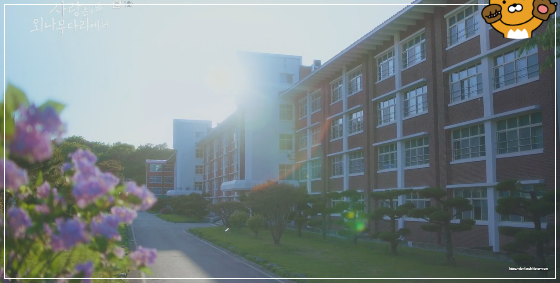 나무가 길게 늘어선 교정과 깔끔하게 정돈된 화단은 드라마 속에서 아름다운 순간들을 더욱 감성적으로 표현해주죠.