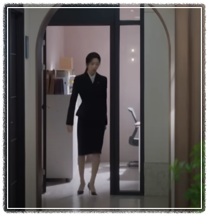 1회에서는 화이트 셔츠 + 네이비 미디 스커트 조합에 해수엘 귀걸이를 매치해, 단아하면서도 완성도 높은 오피스룩을 선보였어요.