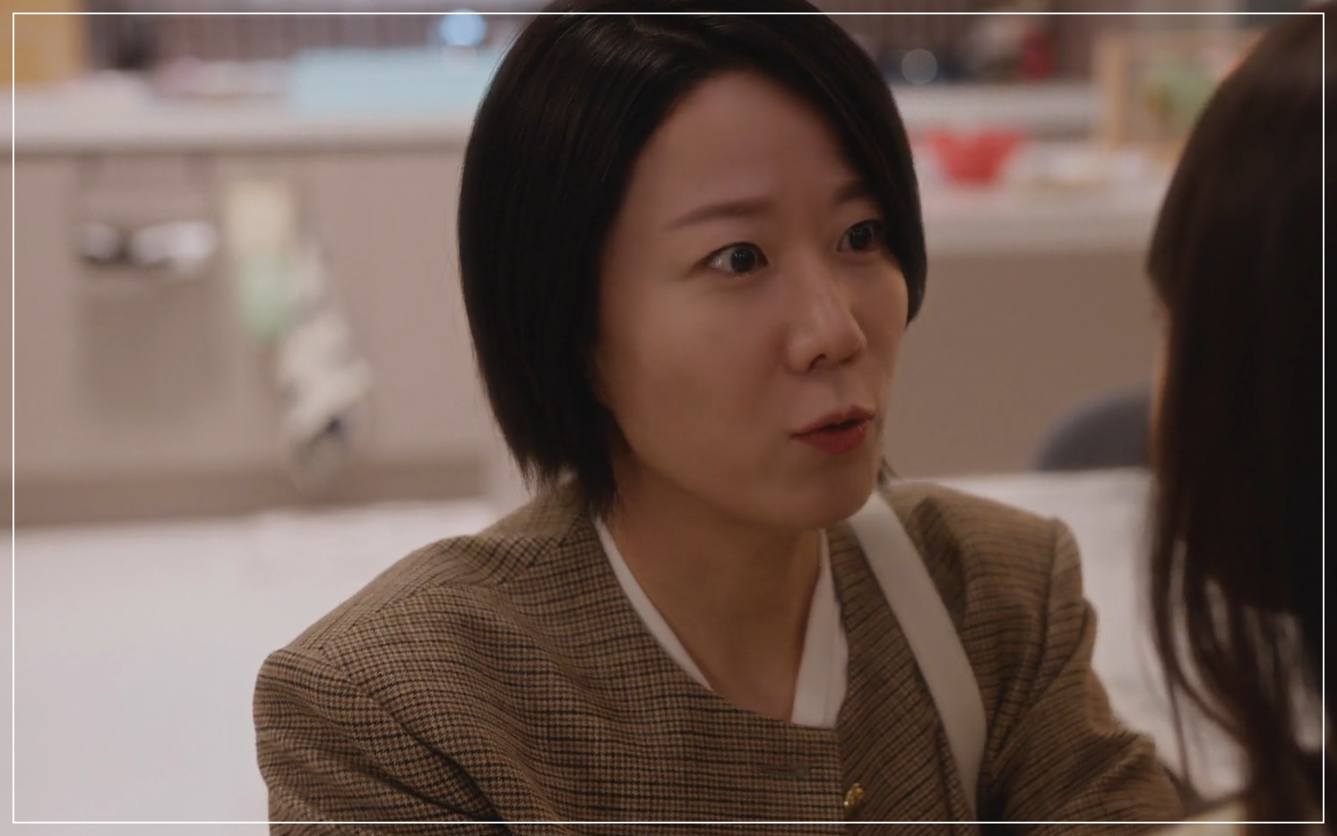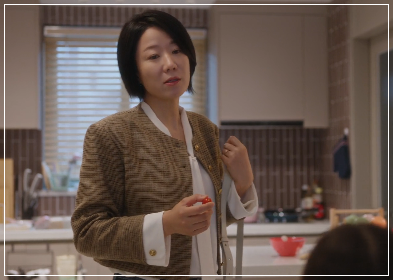 ✔ 드라마 1회 첫 출근길에서 전혜진이 선택한 간절기 필수템! ✔ 크롭 기장과 클래식한 체크 패턴이 세련미 UP!