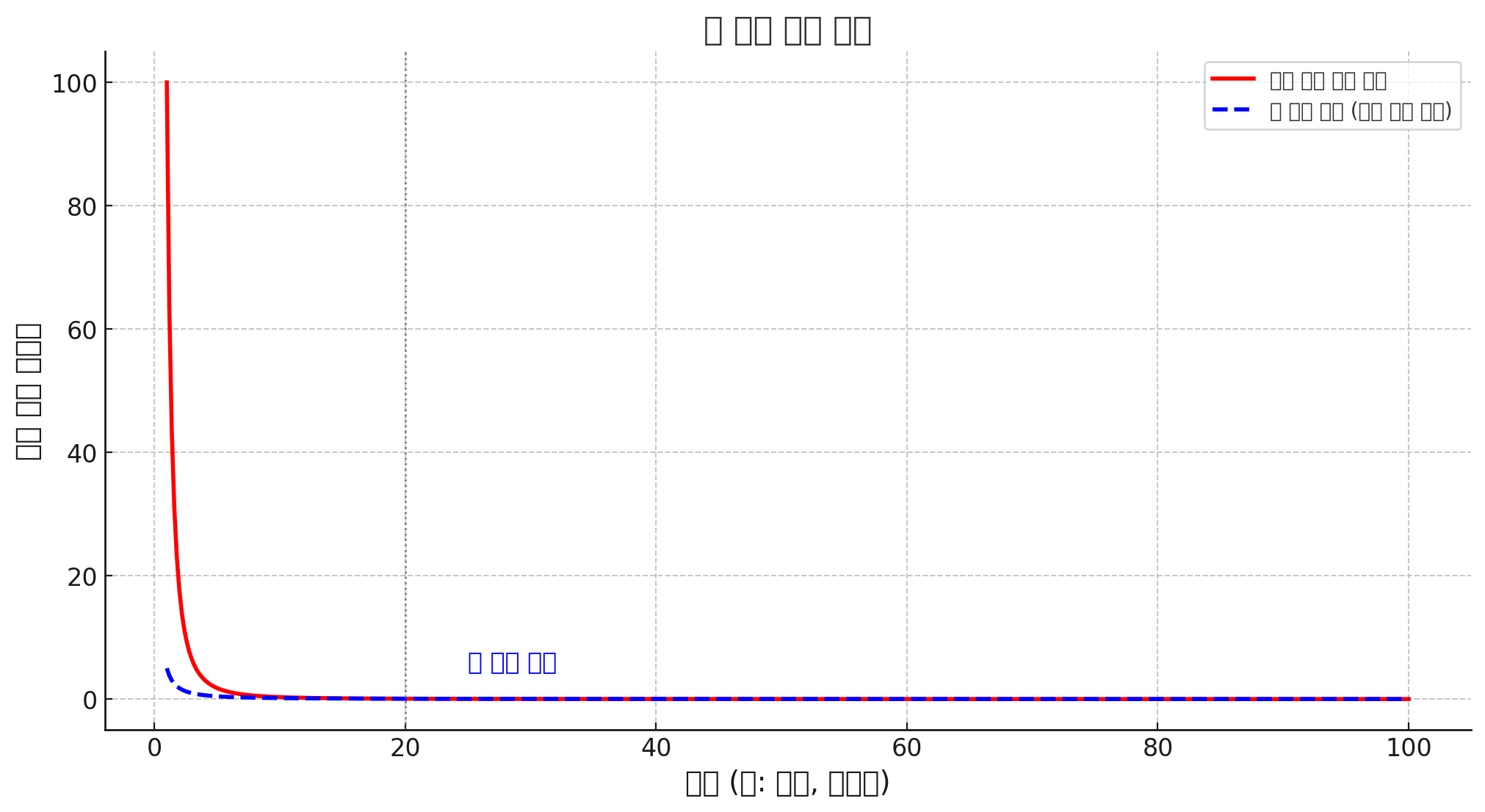 멱법칙과 관련된 개념 중 하나가 바로 긴 꼬리(long tail) 현상입니다. 긴 꼬리 현상은 작은 값들이 매우 많이 존재하면서도 전체적으로 중요한 비율을 차지하는 상황을 말합니다. 예를 들어, 아마존에서 판매되는 수많은 책 중에서 소수의 베스트셀러가 높은 판매량을 기록하지만, 비인기 책들의 전체 판매량을 합치면 이들이 차지하는 비중도 상당히 큽니다. 이처럼 많은 작은 항목들이 모여 큰 의미를 갖는 것이 바로 긴 꼬리의 힘입니다.