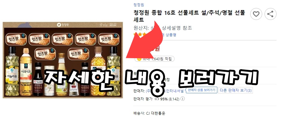 부담 없이 선물하기 좋은 명절 종합 선물 세트는 식용류, 식초, 간장, 소금 , 올리고당, 스팸이나 참치등이