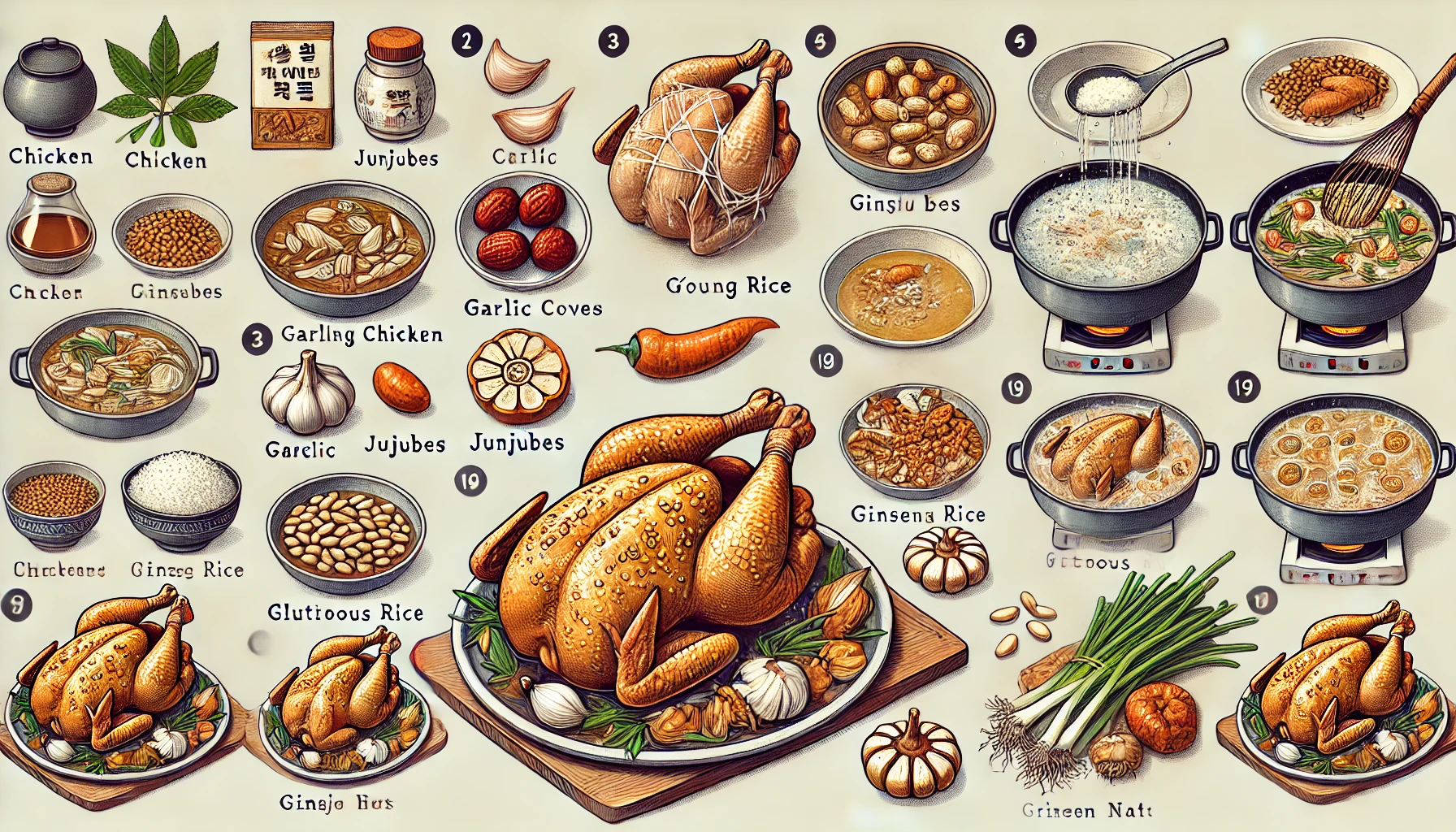 삼계탕을 만들기 위해서는 먼저 모든 재료를 준비해야 합니다. 영계는 내장을 제거하고 깨끗이 씻어줍니다. 찹쌀은 미리 물에 불려둡니다. 인삼과 대추도 깨끗이 씻어 준비합니다. 마늘은 껍질을 벗기고 대추는 씨를 제거합니다. 이렇게 준비된 재료들은 삼계탕의 맛을 한층 더 높여줍니다. 또한, 파는 길게 썰어 다져 놓습니다.