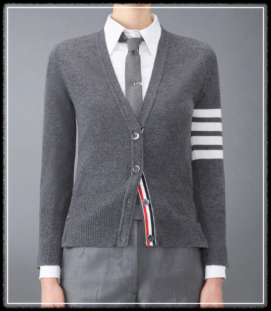 또 다른 장면에서는 톰브라운 4-바 니트 카디건을 착용했는데요.