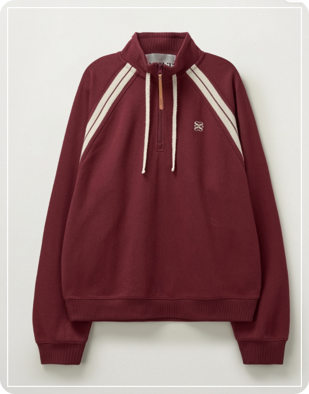 ✔ 상의: SATUR 로턴 하프 집업 스웨트셔츠 (버건디)