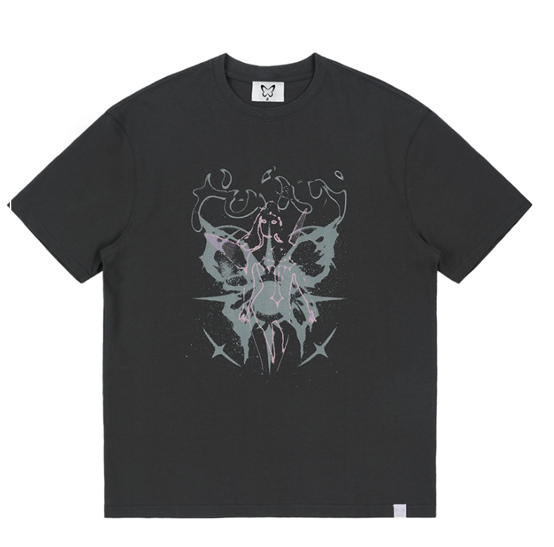자연스러운 오버핏과 신비로운 그래픽이 인상적인 반팔 티셔츠.