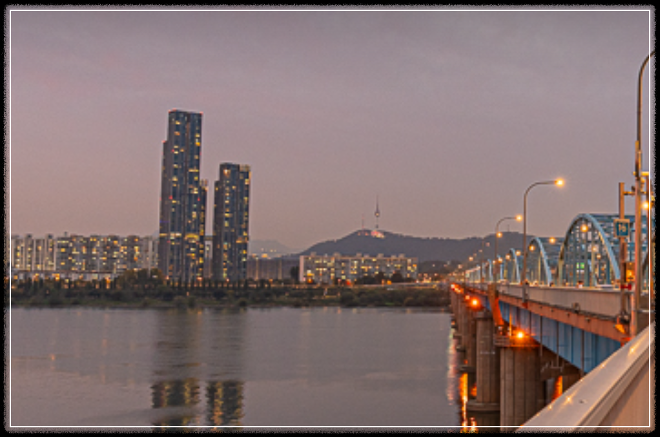 한강 위로 노을이 물들고, 멀리 남산타워까지 한눈에 담기는 이곳은 실제로도 서울 야경 명소로 손꼽히는 장소랍니다.