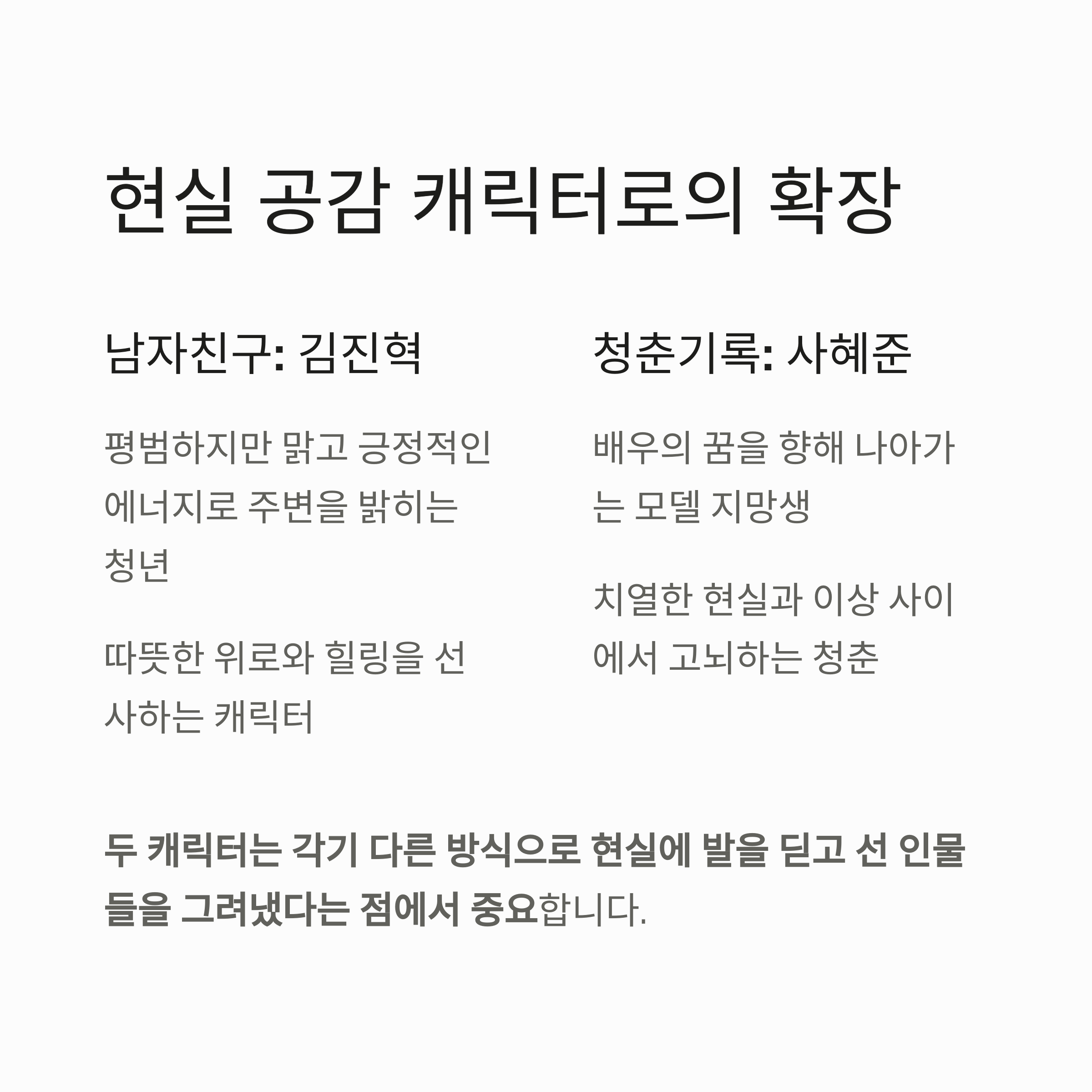 특히, 서로 다른 매력을 가진 두 사람이 하나의 목표를 향해 협력하고 때로는 갈등하며 만들어갈 관계성이 핵심 관전 포인트가 될 것입니다.