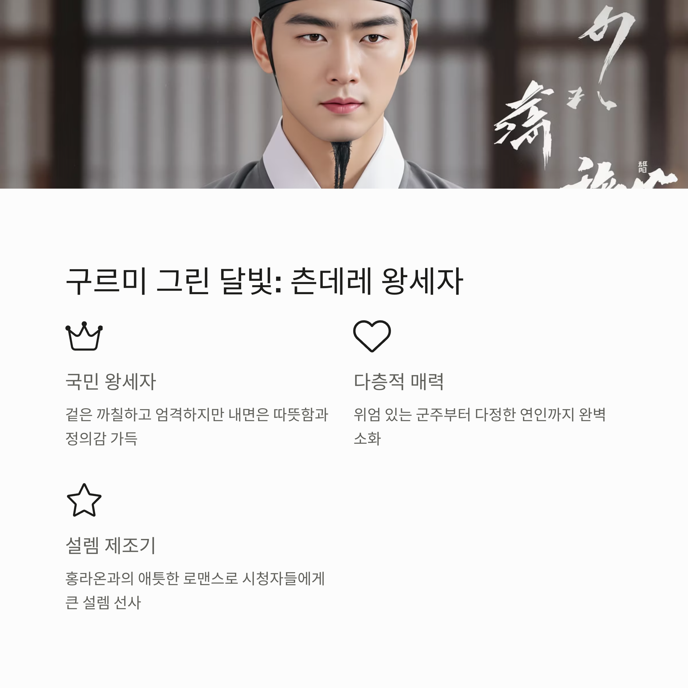 | 구르미 그린 달빛 | 김유정 | 왕세자와 남장 내시, 애틋한 궁중 로맨스 |