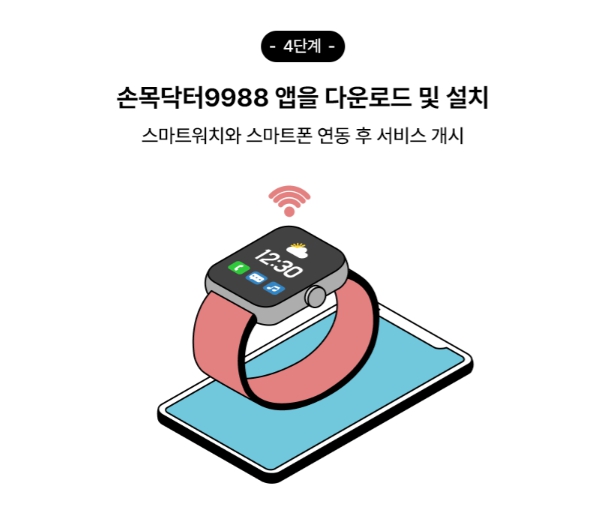 4단계: 손목닥터9988 앱을 다운로드 및 설치 (스마트워치와 스마트폰 연동 후 서비스 개시)