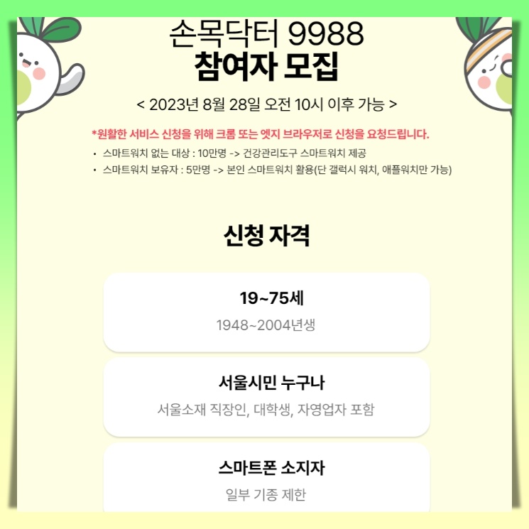 23년 8월 28일 오전 10시 이후로 신청이 가능하고 현재~ 3차 신청을 받고 있는 ~ 손목닥터 9988