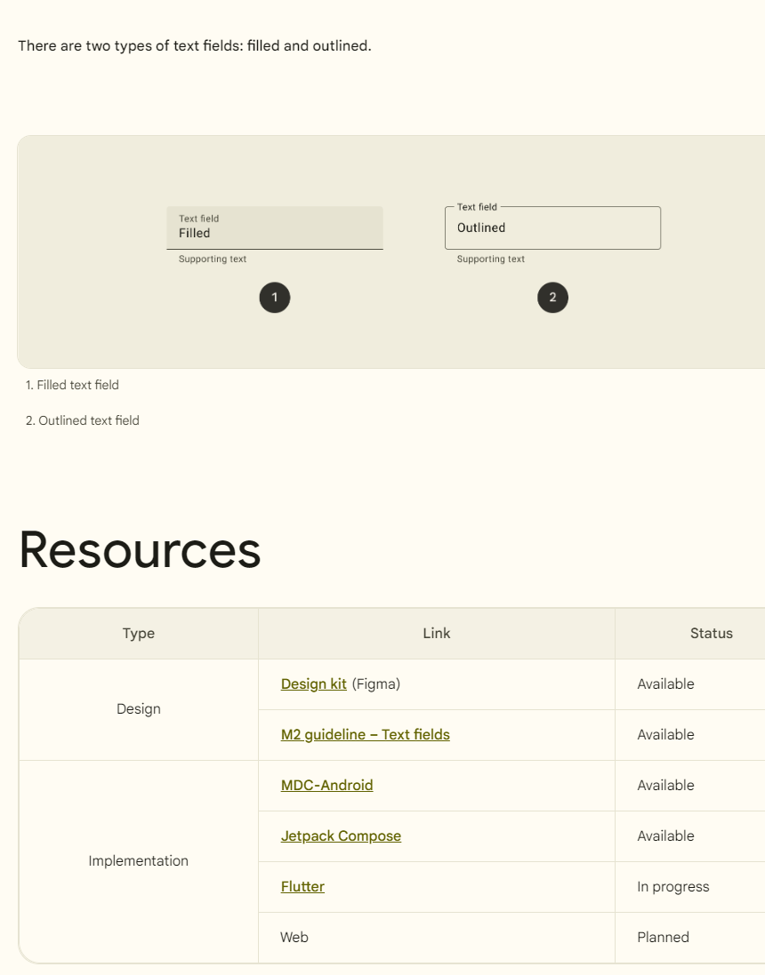 이전 글에서 텍스트 필드가 자바스크립트 없인 작동이 안 되었는데 위 표의 web planned라서 아직 자바스크립트가 있어야만 구현이 되는 것인지 타입에 보면 디자인 쪽에 피그마 디자인 키트는 가능하다고 나온 게 피그마로 디자인은 되나 작동이 되는 것인지 일단 피그마를 배워서 만들고 테스트를 해봐야 할거 같습니다.