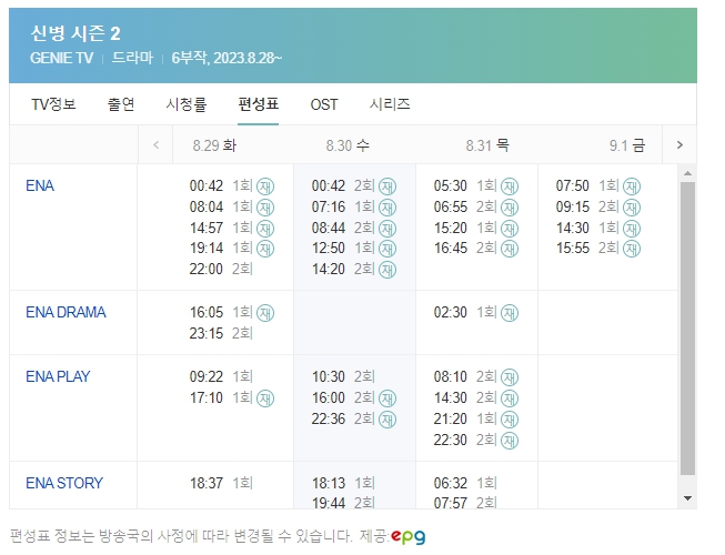 ENA 채널에서 방영하는 시간에 재방송으로 시청이 어렵다면