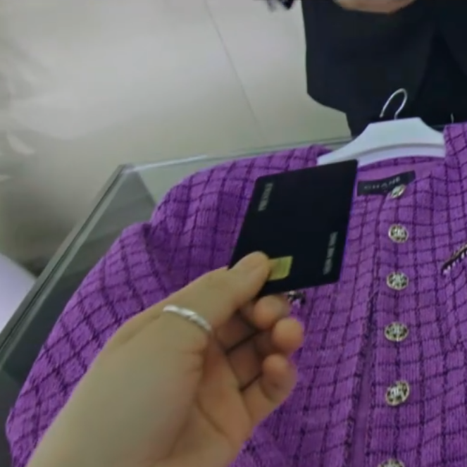 고급스러워 보이는 자켓의 브랜드는 샤넬 제품이랍니다.