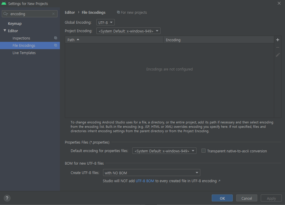 초기에 설정을 encoding을 다 utf-8 로 하고 시작 하는데