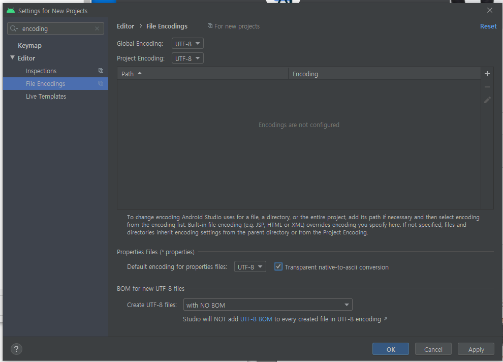 안드로이드 스튜디오 설정을 찾아 보면