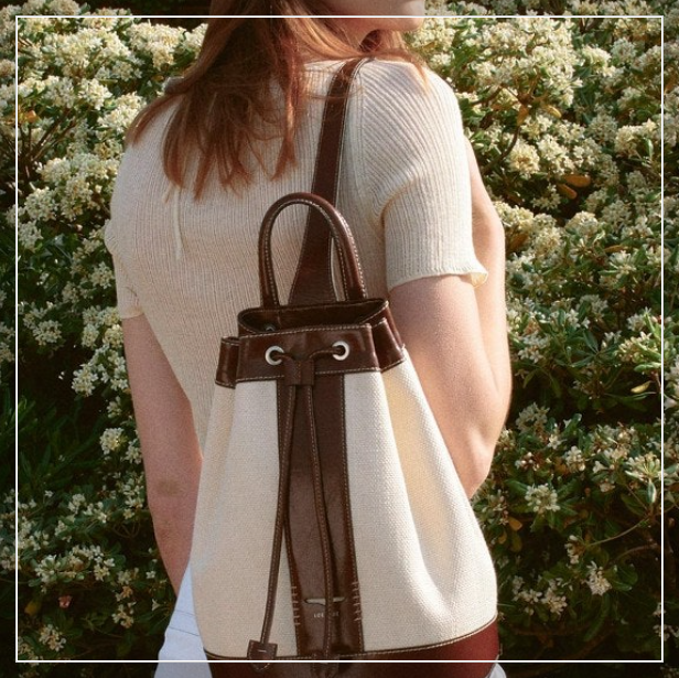 - 포인트: 부드러운 아이보리 컬러에 심플한 버킷형 쉐입이 특징. 숄더백과 백팩으로 모두 활용 가능해 실용성 갑!