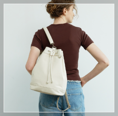 - 포인트: 부드러운 아이보리 컬러에 심플한 버킷형 쉐입이 특징. 숄더백과 백팩으로 모두 활용 가능해 실용성 갑!