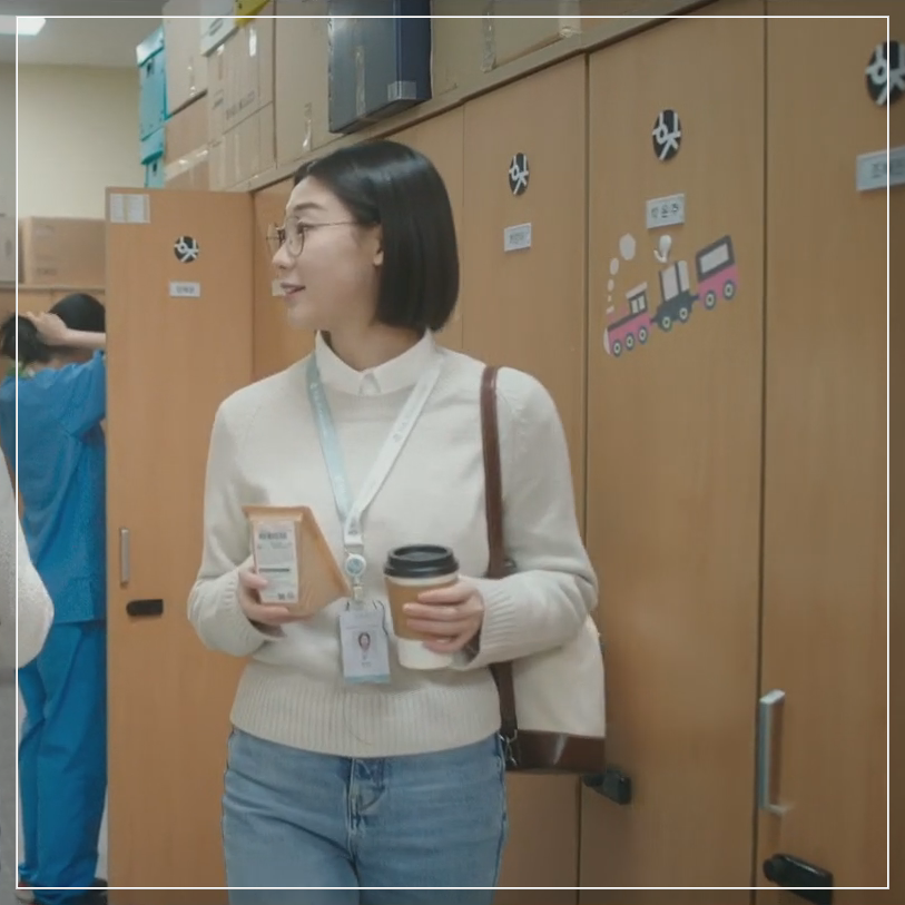 김사비 캐릭터는 전공의라는 직업 특성상 수술복이나 병원 유니폼을 주로 입지만, 출근/퇴근길에서 살짝 비치는 사복은 언제나 베이직하면서도 깔끔한 데일리룩의 정석을 보여줘요.