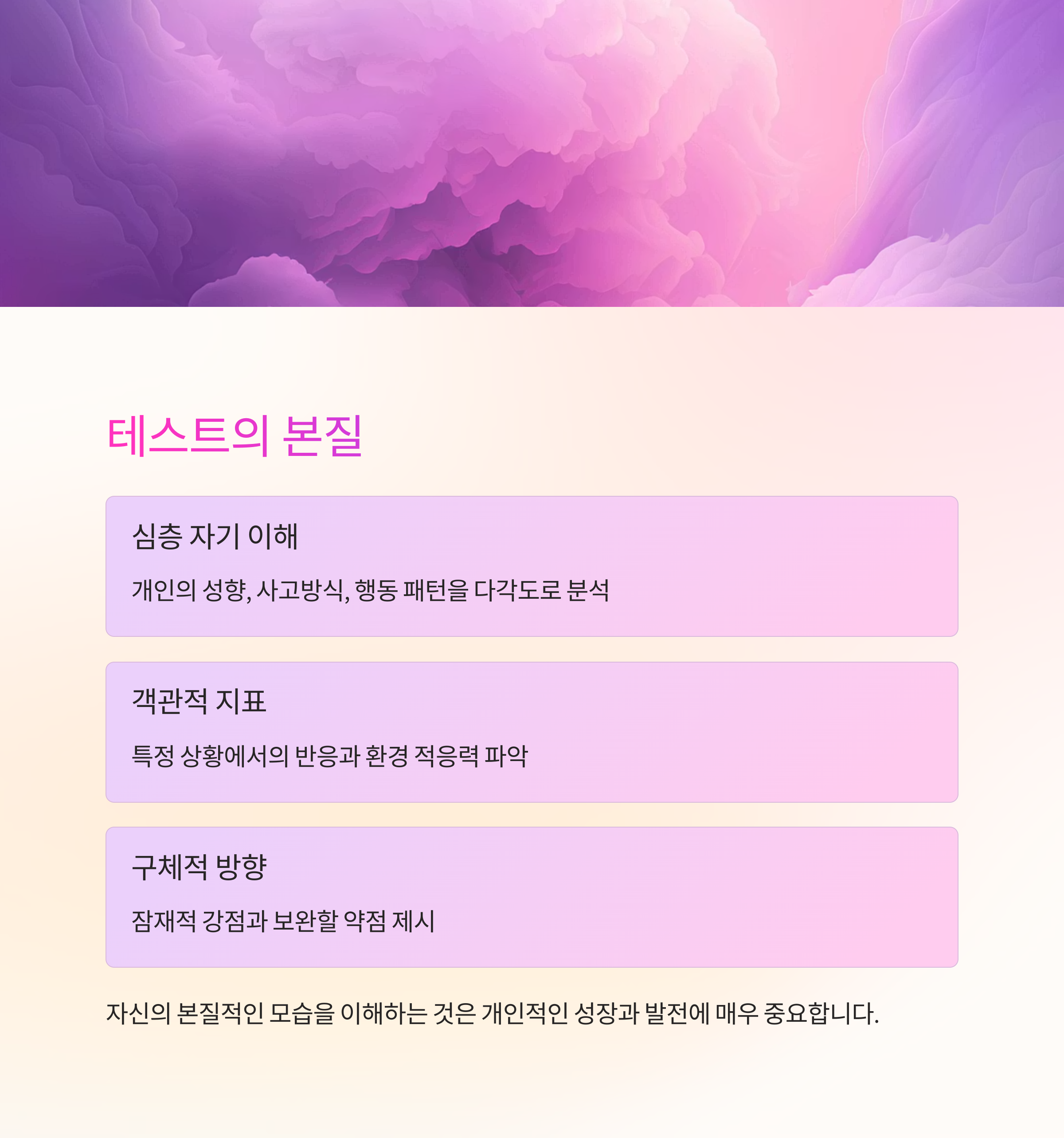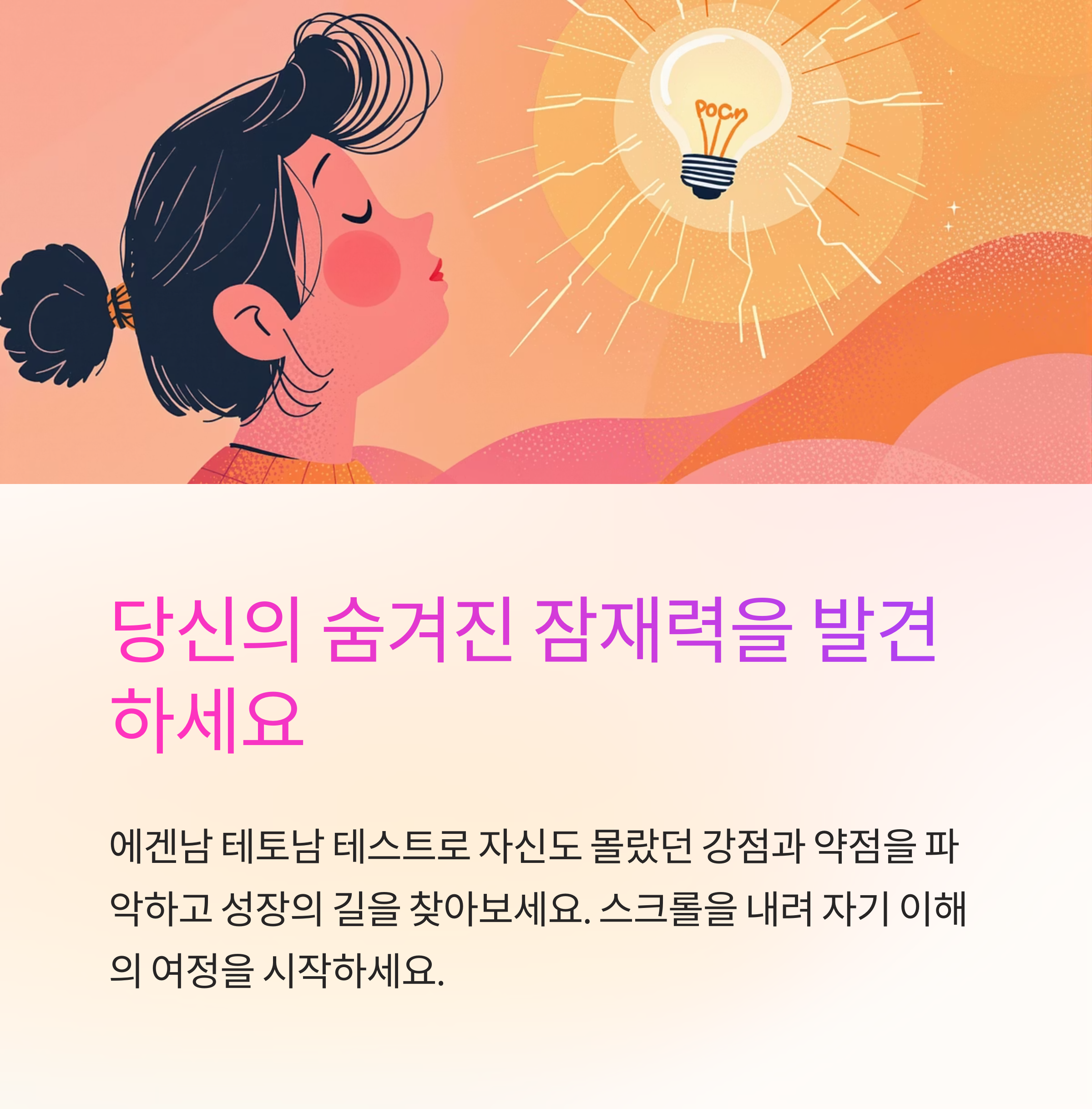 "몇 가지 질문을 통해 당신의 성향과 더 잘 맞는 유형을 재미로 점검해 보세요."