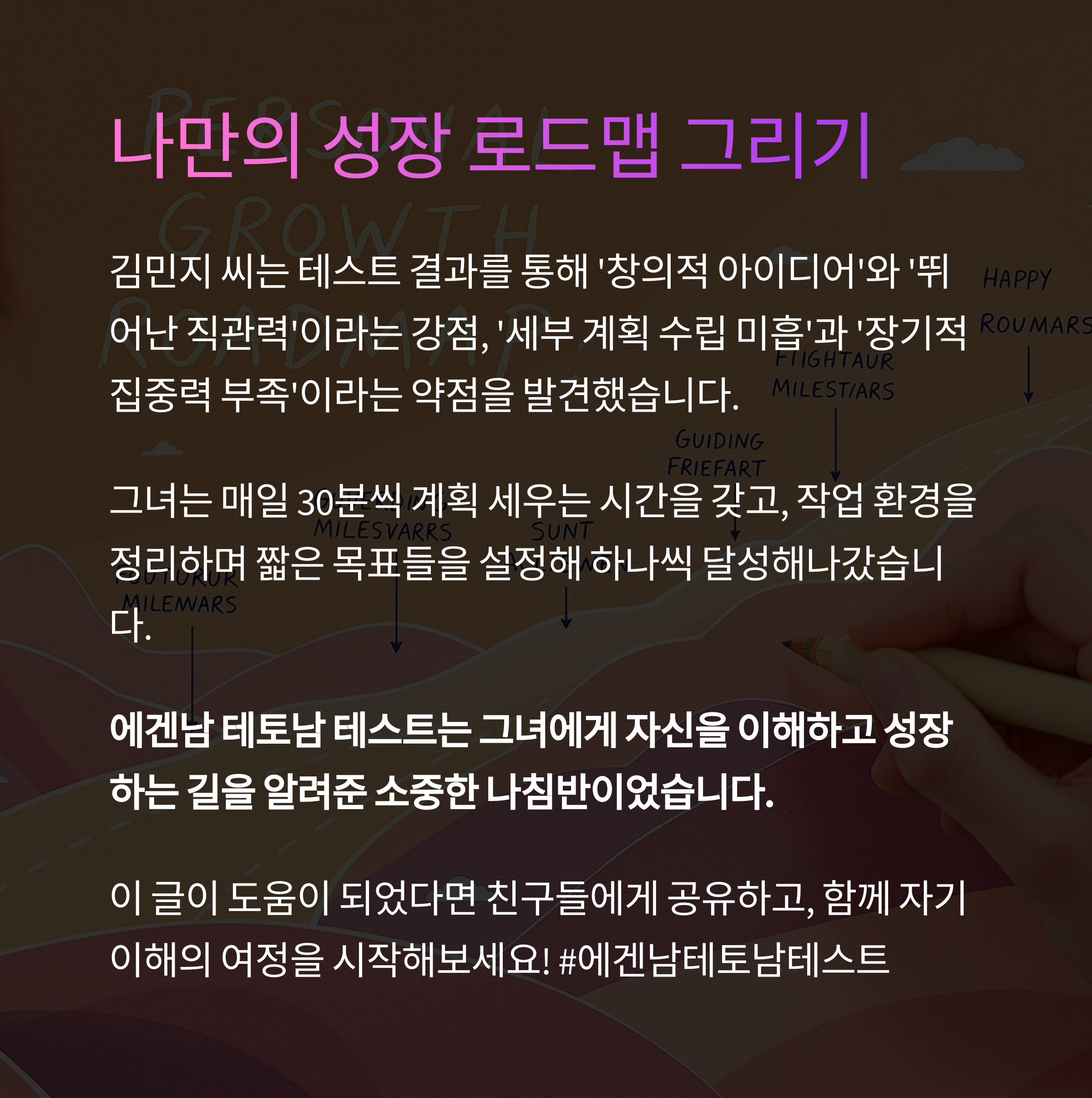 | 에겐남 | 명확하고 긍정적인 피드백 | 애매모호한 표현, 비판적 말투 |