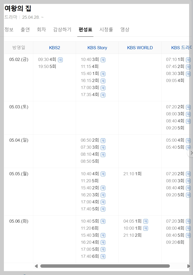 여왕의 집 재방송 편성표 & 최신 회차정보
