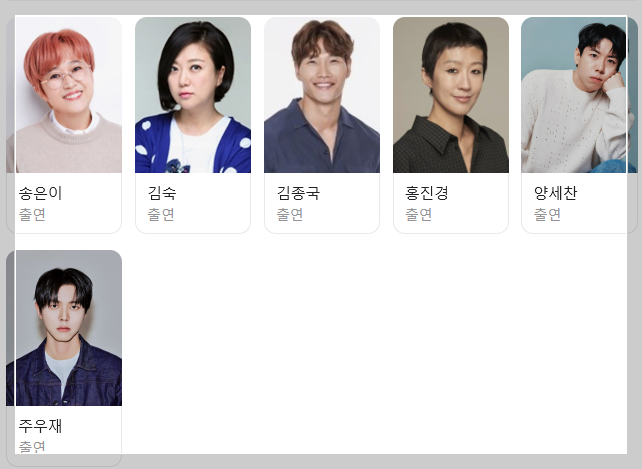 - 출연진: 김종국, 정형돈, 송은이, 김숙, 민경훈 등