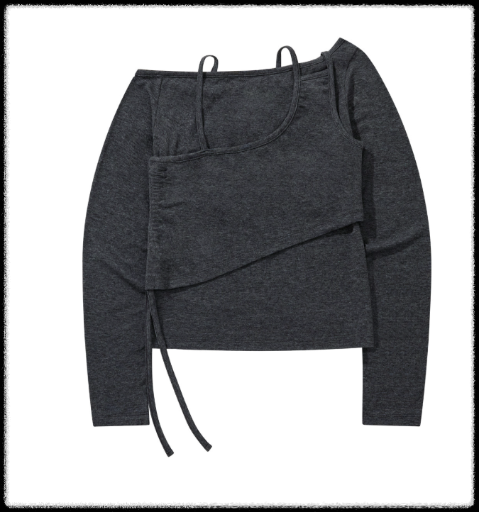 얇은 슬리브리스와 티셔츠를 레이어드한 것 같은 디테일이 진짜 매력 포인트죠.