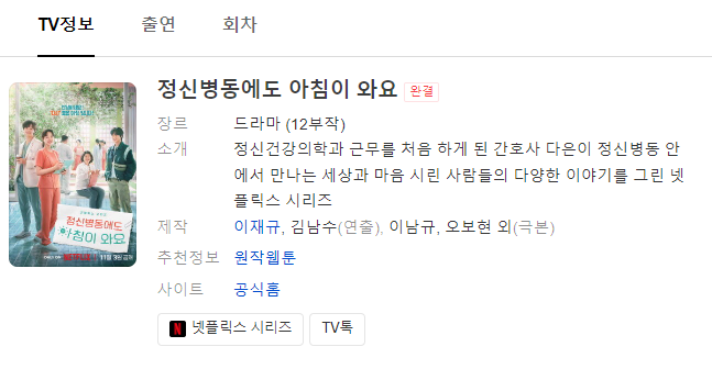 정신병동에도 아침이 와요는 넷플릭스 오리지널 한국 드라마로 동명의 웹툰이 원작인 드라마랍니다.