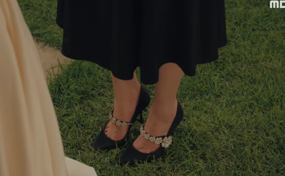 - 채수빈은 드레스를 더욱 돋보이게 하기 위해 Roger Vivier의 Efflorescence 메리 제인 펌프스를 착용했습니다. 꽃 모양 장식이 더해져 화려하면서도 깔끔한 코디를 완성해주었으며, 가격은 약 140만 원 내외였습니다.