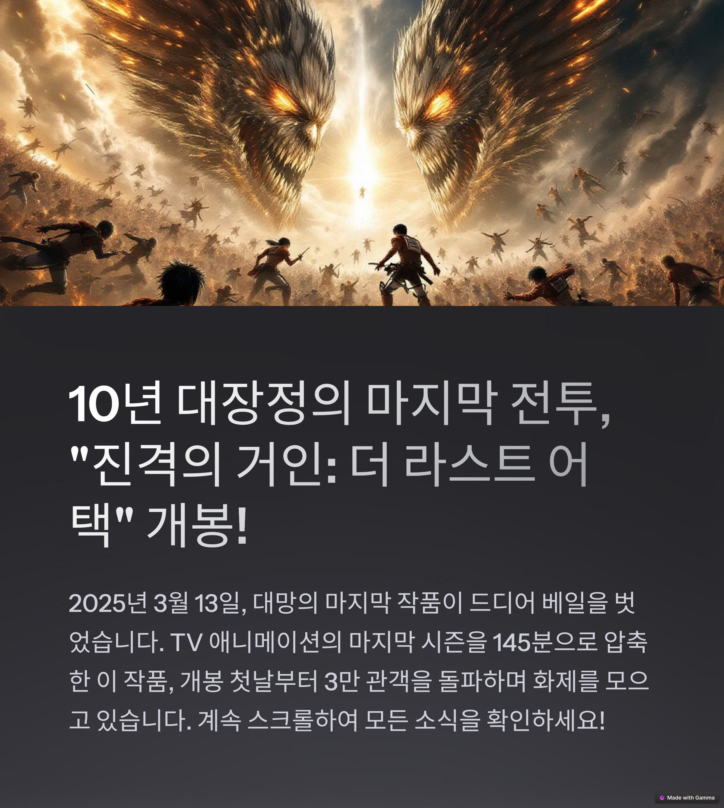 안녕하세요, 애니메이션 팬 여러분! 드디어 진격의 거인 완결편: 더 라스트 어택이 개봉했습니다.