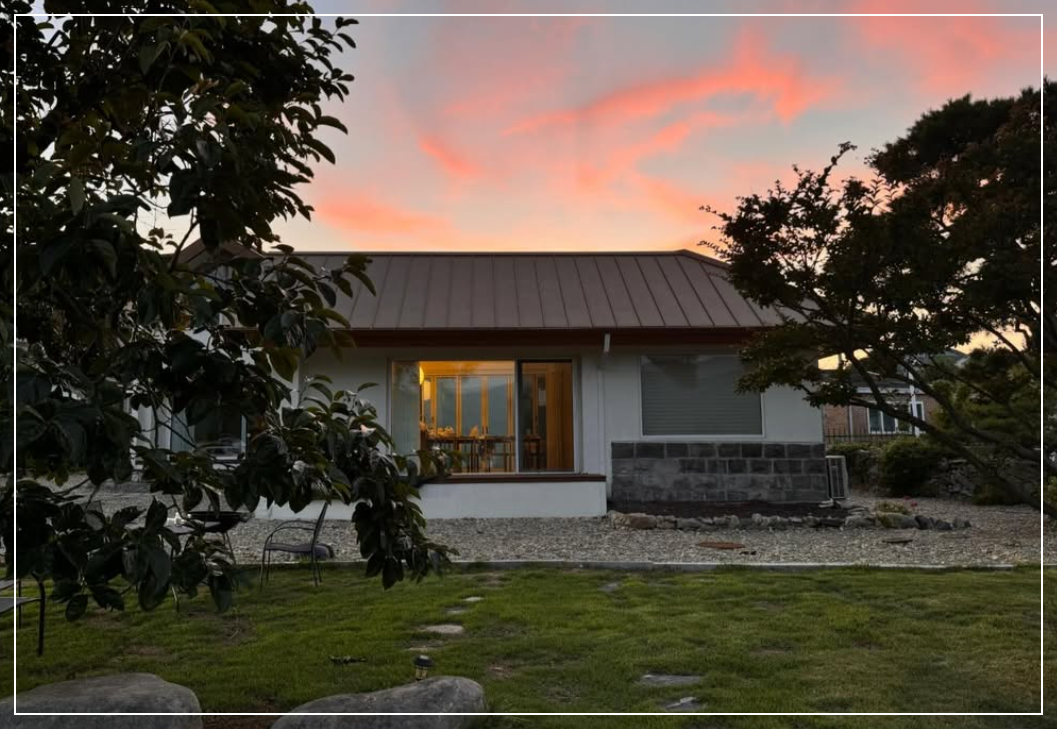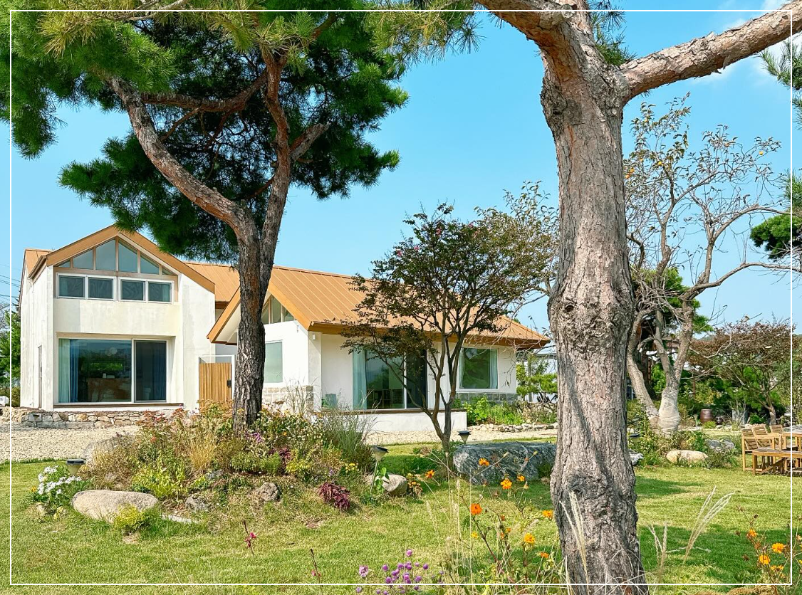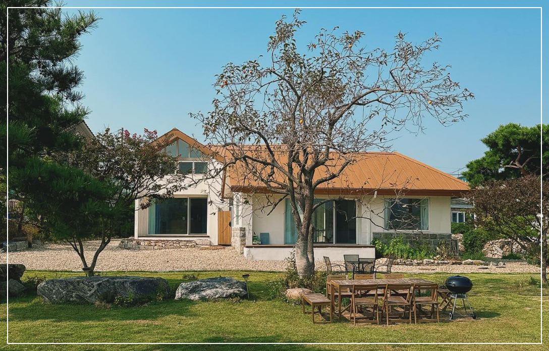 이 집은 실제로 인천 강화도 내가면에 위치한 독채 펜션, 고요정원입니다.