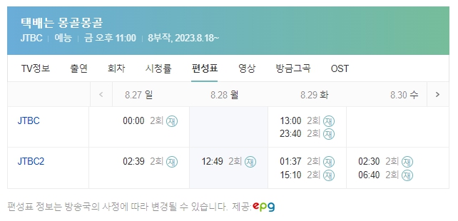 < 택배는 몽골몽골 실시간 재방송 편성표 정보 >