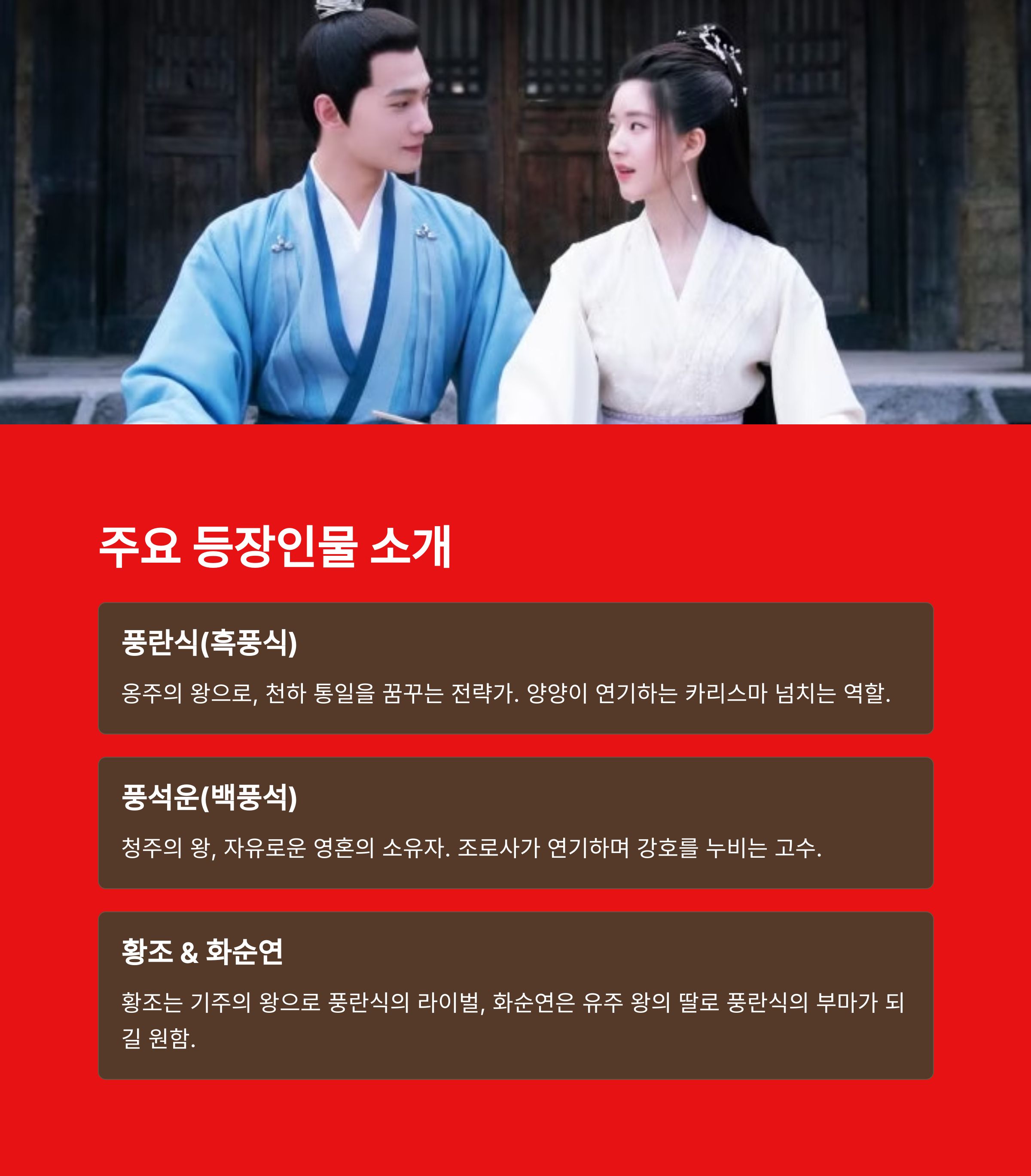 | 풍란식, 풍석운, 황조, 옥무연 | 무협, 로맨스, 사극 | 넷플릭스, 티빙, 왓챠, 웨이브 |
