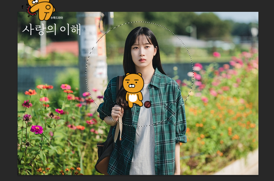 얼굴 부분에 원형 선택도구로 영역을 선택합니다.