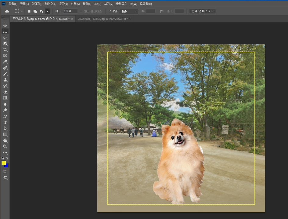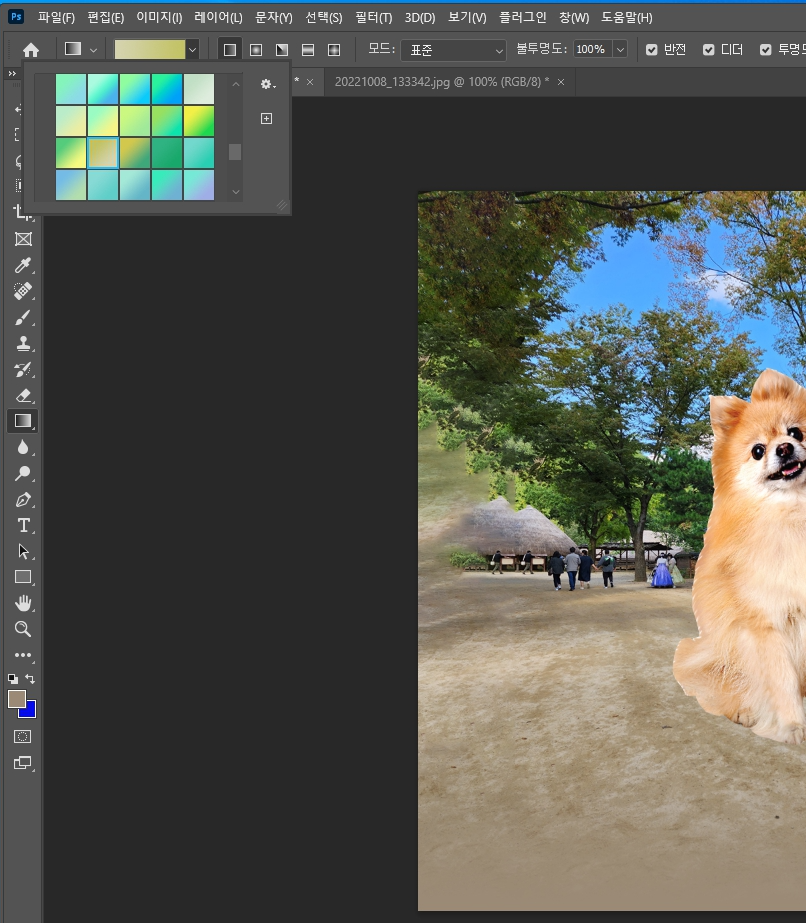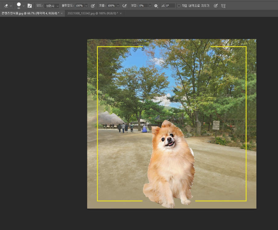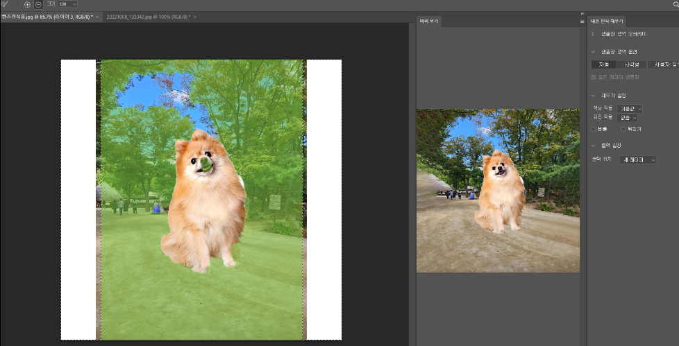 배경색과 강아지를 좀 더 자연스러운 느낌을 살리기 위해서