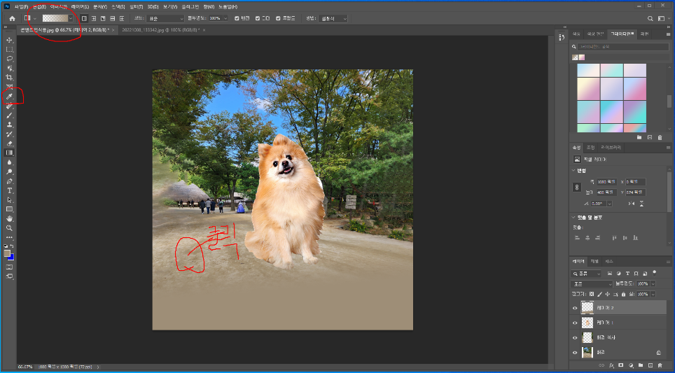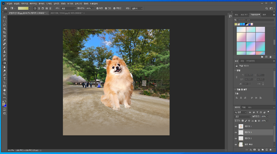 강아지 그림과 배경을 좀 더 자연스럽게 만드는 작업을 적어봅니다.