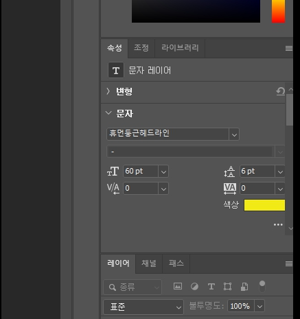 원하는 글씨를 입력 후 이동 툴로 원하는 곳에 위치를 정해서 놔두면 돼요~