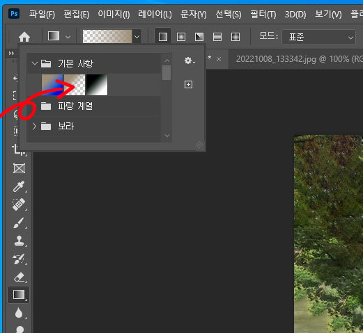 도구바에서 그레이디언트 도구를 클릭합니다.