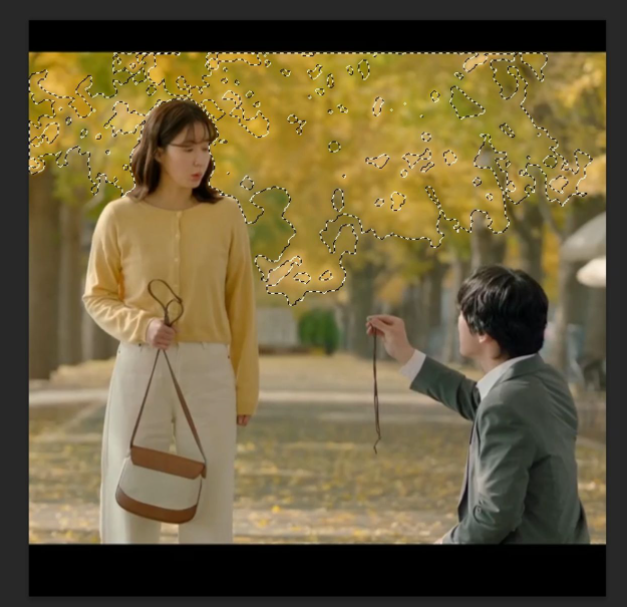 마술봉 도구 : 클릭하면 비슷한 색상이 선택이 됩니다. (색상의 경계가) 명확할 때 유용한 선택 도구 툴입니다.
