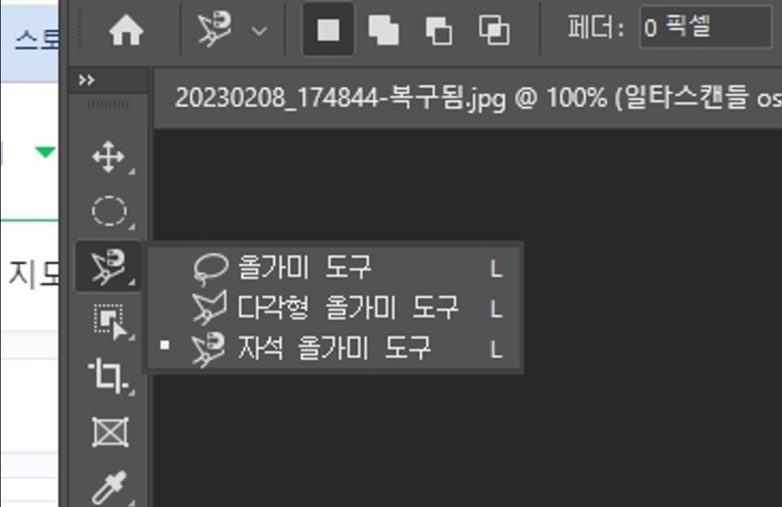 포토샵 올가미 도구 빠르게 사용할 때 쓰는 단축키