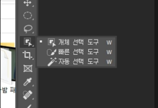빠른 선택 도구 : 클릭하거나 드래그하면 비슷한 색상이 빠르게 선택이 됩니다.