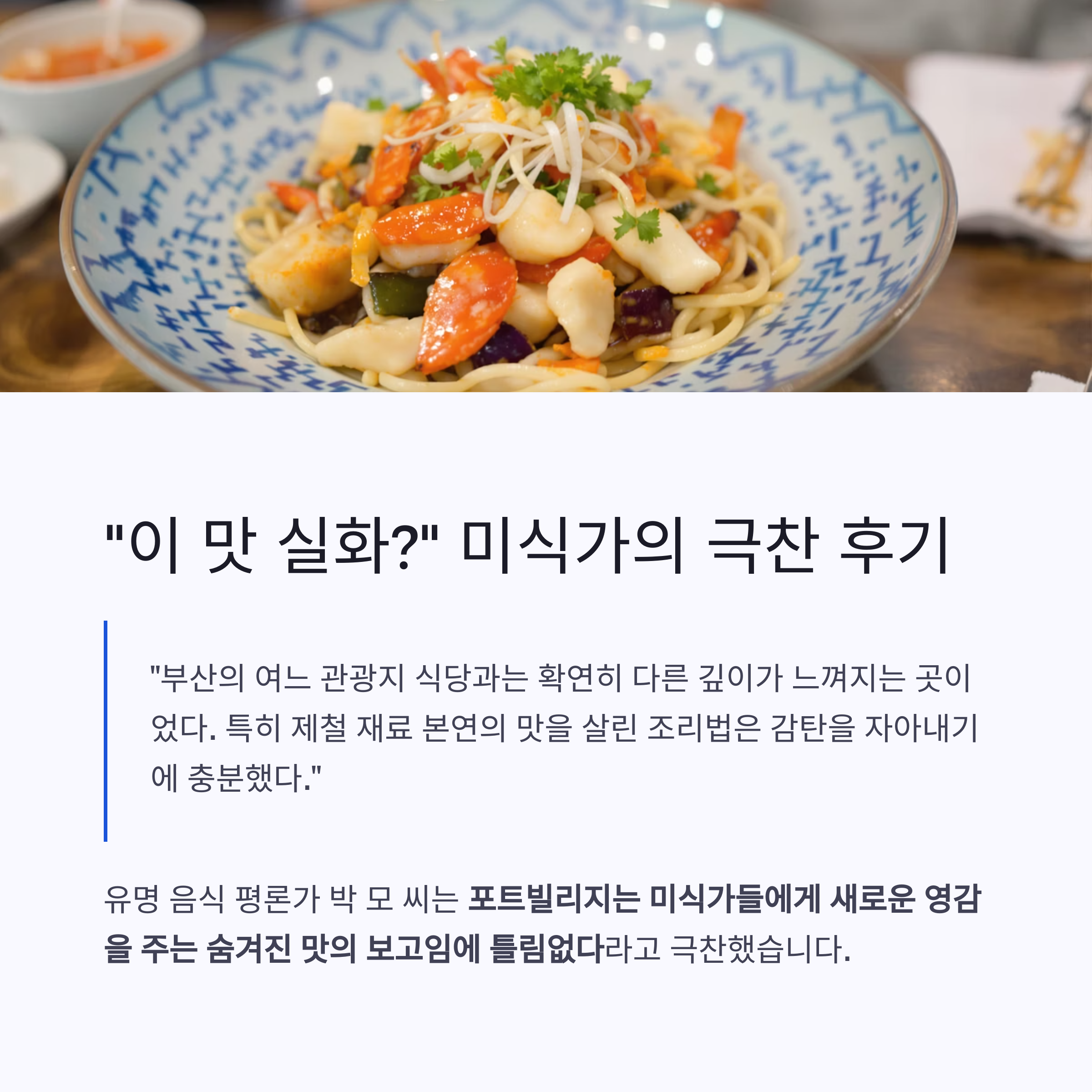 "이 맛 실화?" 미식가의 포트빌리지 극찬 후기