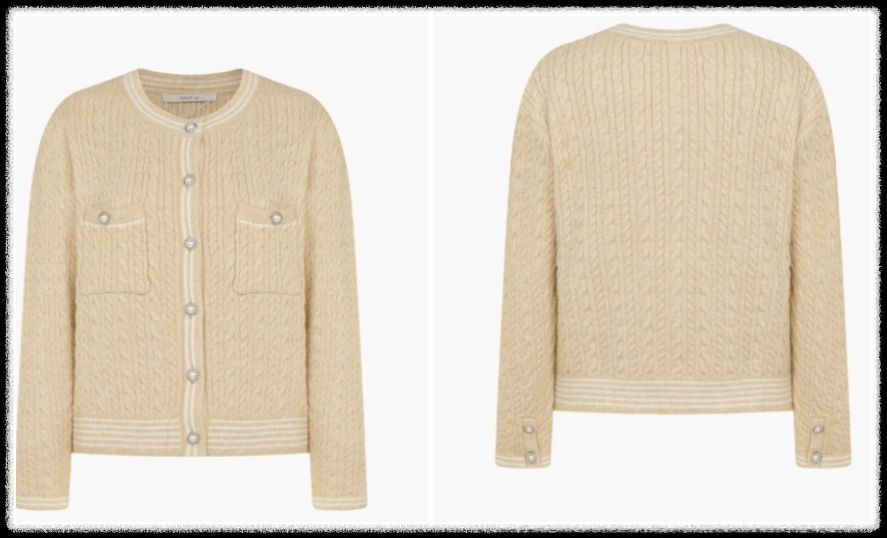 - 디테일: 진주 장식 버튼 + 케이블 니트 짜임
